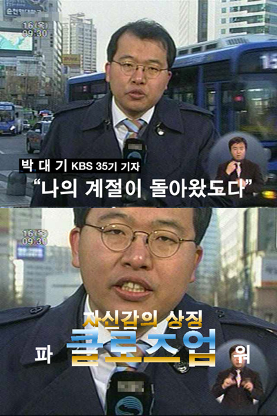 이 장면은 지난 16일 박 기자의 얼굴이 갑자기 클로즈업된 모습이 담겨있다. 한 네티즌은 캡처된 사진 위에 '박대기 KBS 35기 기자. 나의 계절이 돌아왔도다. 자신감의 상징 파워 클로즈업'이라는 문구를 추가해 놔 더욱 웃음을 자아냈다.