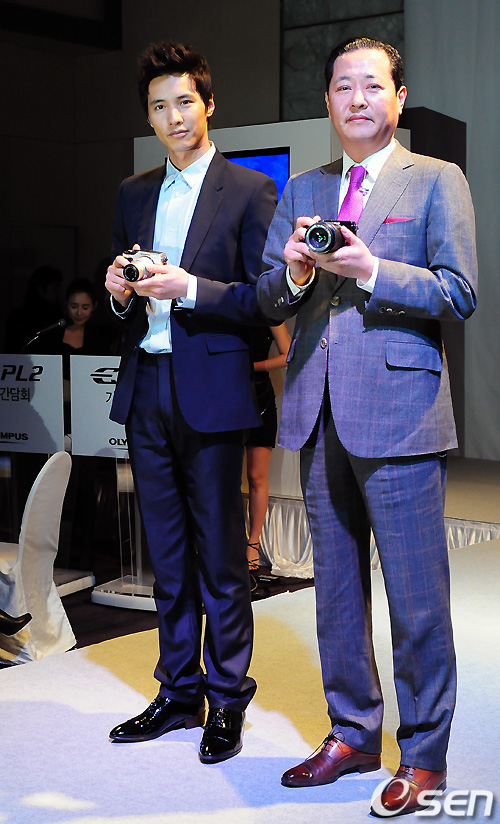 배우 원빈과 올림푸스한국 방일석 사장이 포즈를 취하고 있다. /sunday@osen.co.kr