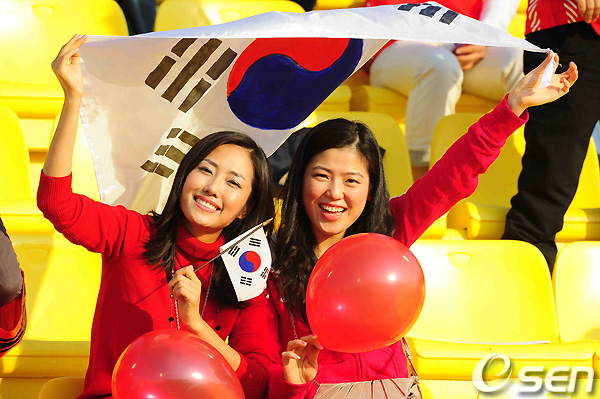 경기 전 한국 응원단이 태극기를 들고 응원을 하고 있다./rumi@osen.co.kr