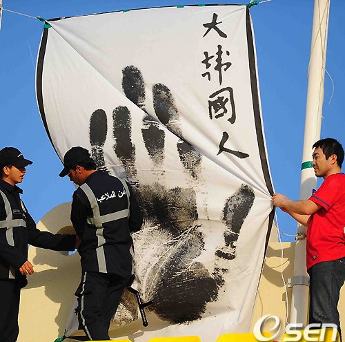 경기 전 한 팬이 안중근 의사의 단지 플래카드를 걸고 있다 . /rumi@osen.co.kr