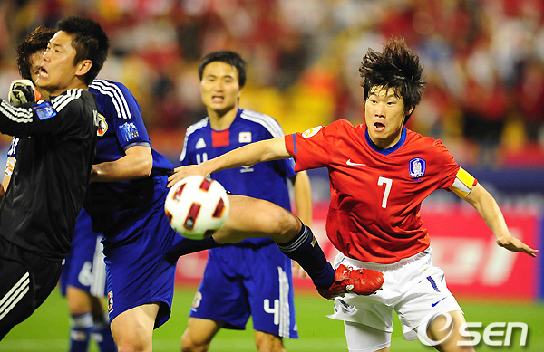 후반 박지성이 일본 문전에서 가와시마 골키퍼가 놓친 공을 바라보고  있다 . /rumi@osen.co.kr