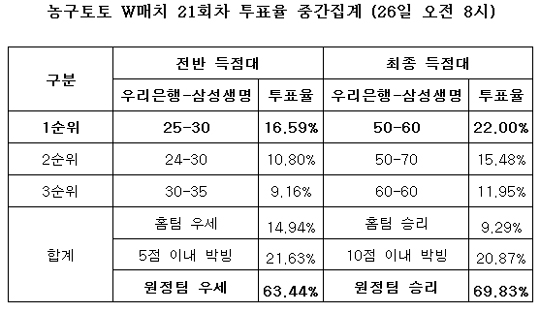 2010-2011 시즌 농구토토 W매치 21회차 투표율 중간집계 결과