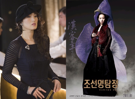 ‘조선명탐정: 각시투구꽃의 비밀’은 정조 16년, 관료들의 공납비리를 파헤치는 조선 최고의 명탐정의 활약을 담은 영화이다. 극중에서 한지민은 사건의 열쇠를 쥐고 있는 미스터리한 여인 한객주역을 맡아 데뷔 이래 처음으로 팜므파탈 연기를 선보인다. 화려한 의상과 강렬한 메이크업으로 확 달라진 한지민은 요염한 눈빛과 미소로 자신의 뒤를 쫓는 탐정까지도 유혹해 사건을 미궁에 빠뜨리며 팜므파탈의 진수를 보여준다.