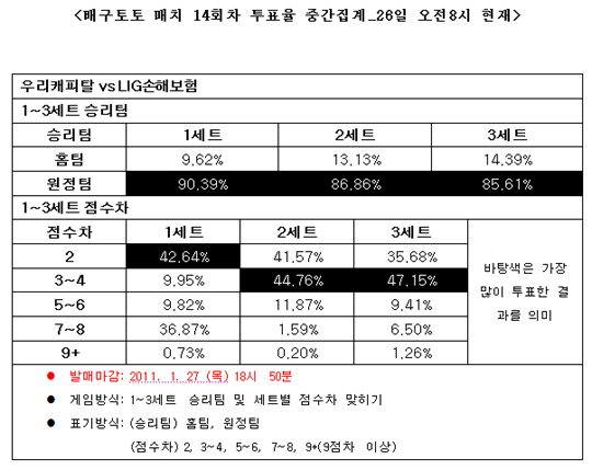 2010-11시즌 프로배구 대상 배구토토 매치 14회차 중간집계 결과