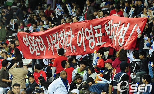 한국 팬들이 은퇴를 준비하는 박지성과 이영표를 위해 플래카드를 펼쳐보이고 있다./rumi@osen.co.kr