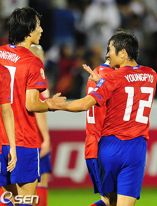 지동원이 한국 세번째 골을 성공시킨 후 이영표가 지동원에게 지시를 내리고 있다./rumi@osen.co.kr