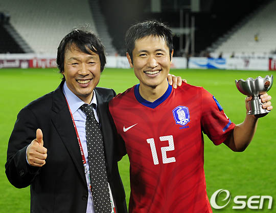 경기를 마친 후 대표팀의 막내 손흥민(19, 함부르크)의 목에 무등을 타고 팬들에게 마지막 인사를 건넨 그는 밝은 얼굴로 은퇴 의사를 밝혔다.