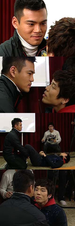 특히 이정과 창민은 얼굴 바로 코앞으로 자신의 얼굴을 들이대며 ‘시크릿가든’ 김주원-길라임 커플이 펼쳐보였던 ‘눈 맞춤 윗몸일으키기’를 완벽 재현했다.