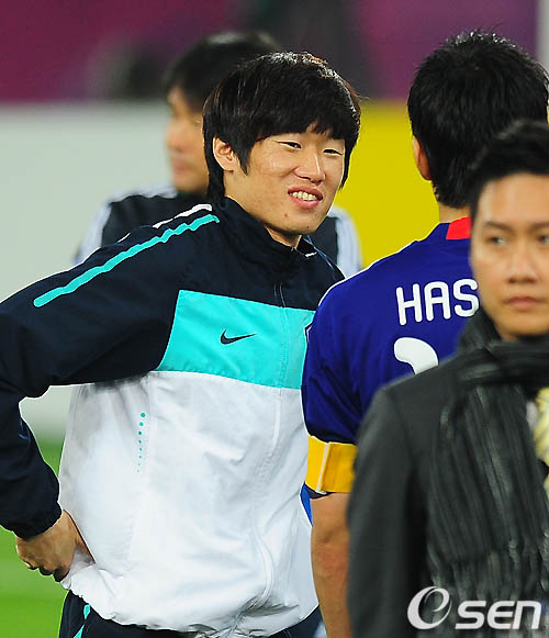 경기를 마치고 박지성이 일본 주장 하세베 마코토와 즐겁게 얘기를 나누고 있다./rumi@osen.co.kr