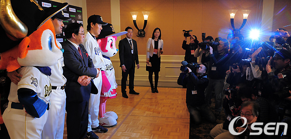 오릭스 버팔로스의 '코리안특급' 박찬호(38)와 '아시아의 홈런왕'이승엽(35)이 30일 오후 일본 오사카 임페리얼호텔에서 입단 기자회견을 가졌다.