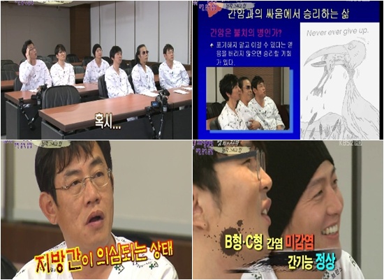 검사를 마친 멤버들은 연세 세브란스 병원 간암 전문의 한광협 교수의 친절한 강좌를 들으며 간 질환에 대한 이모저모를 알게 됐다. A형 간염, B형 간염에 대한 그간의 오해와 잘못된 지식을 바로잡고 간암에 대한 상식을 접하며 초조한 마음을 달랬다.