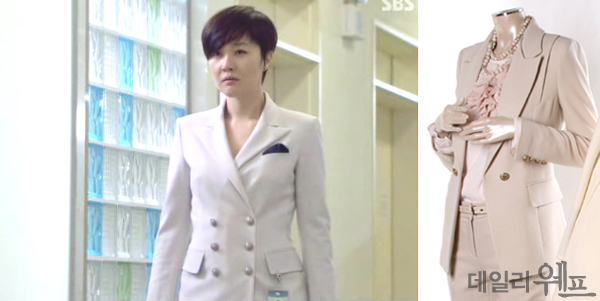 남성의 더블브레스트(옷섶을 깊게 겹치고 단추를 두 줄로 단 윗옷이나 외투)를 떠올리는 재킷과 에지 있는 칼라가 어우러진 매니시한 스타일링으로 강력계 여검사의 모습을 완벽 재현했다.