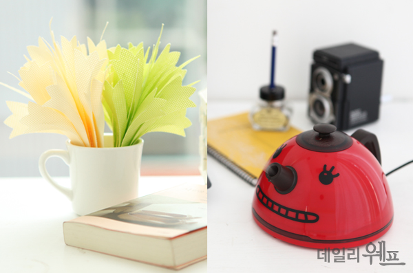 [사진. 왼쪽부터 미스터 에코_미스터 부케, 디자인 에버_페이스 티팟 음이온 미니 주전자 가습기]