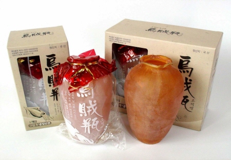 오징어 술병 ‘오적병’은 오징어의 다리와 내장을 제거한 뒤 몸통을 일정한 온도로 부풀려 부드러운 해풍에 말린 술병이다.