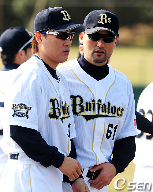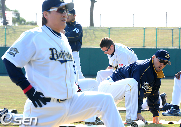 오릭스 버팔로스 박찬호(38, 투수)와 이승엽(35, 내야수)이 1일 일본 미야코지마 시민구장에서 첫 담금질에 나섰다. 지난해까지 메이저리그에서 뛰었던 박찬호와 아시아 홈런왕 출신 이승엽의 가세 속에 100여 명의 취재진이 몰려 들었다.