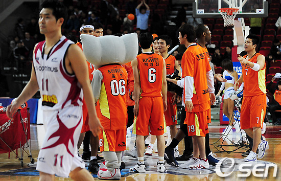경기 종료 후 전자랜드 선수들이 승리에 환호하고 있다. /sunday@osen.co.kr