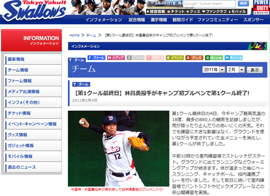 <사진>야쿠르트 구단 홈페이지 캡쳐.