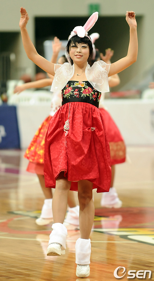하프타임때 모비스 치어리더들이 한복을 입은채 깜찍한 무대를 펼치고 있다./soul1014@osen.co.kr