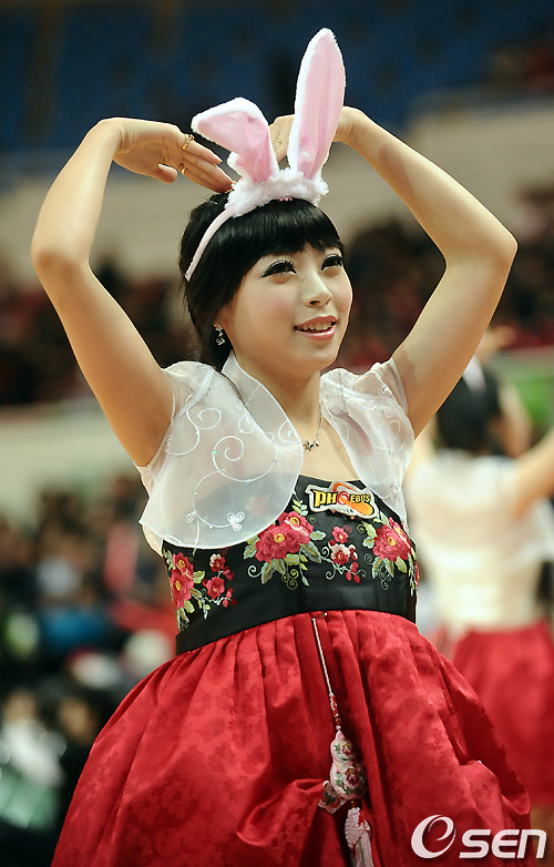 하프타임때 모비스 치어리더들이 한복을 입은채 깜찍한 무대를 펼치고 있다./soul1014@osen.co.kr