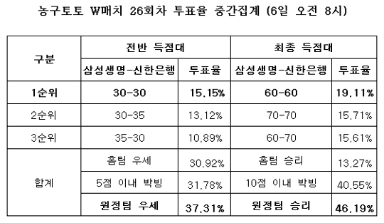 2010-2011 시즌 농구토토 W매치 26회차 투표율 중간집계 결과