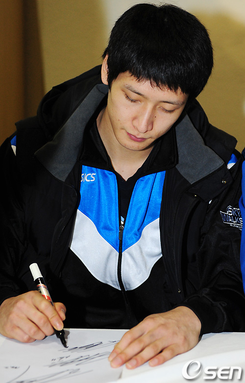 경기 시작 전 진행된 팬사인회에서 현대캐피탈 문성민이 사인을 하고 있다. /sunday@osen.co.kr