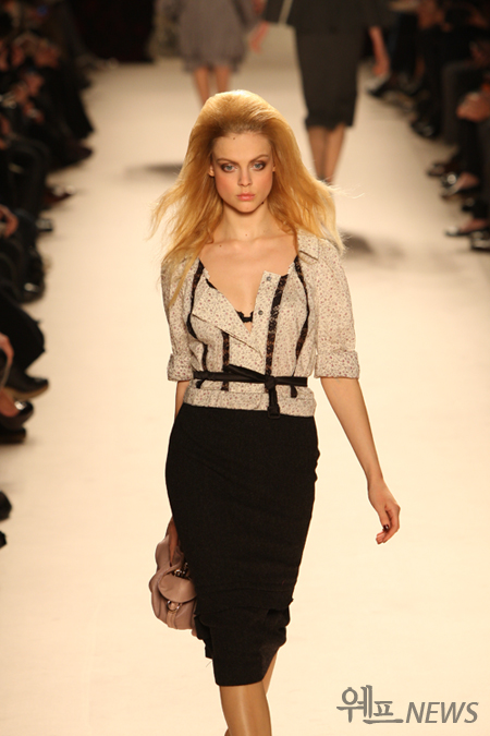짙은 컬러의 아이 메이크업은 자칫 부담감을 안겨줄 수 있기 때문이다. 누드 베이지 컬러의 아이섀도를 사용해 전체적인 눈매를 자연스럽게 살려준다. 블랙이나 브라운 컬러의 아이라이너로 속눈썹 사이사이 및 점막을 꼼꼼하게 채우고 눈 꼬리를 살짝 위로 빼 그려준다. 투명 마스카라로 한 듯 안 한 듯 마무리 하면 완성. 입술은 촉촉함 보다는 매트하게 표현해야 도도한 이미지를 부각시킬 수 있다.