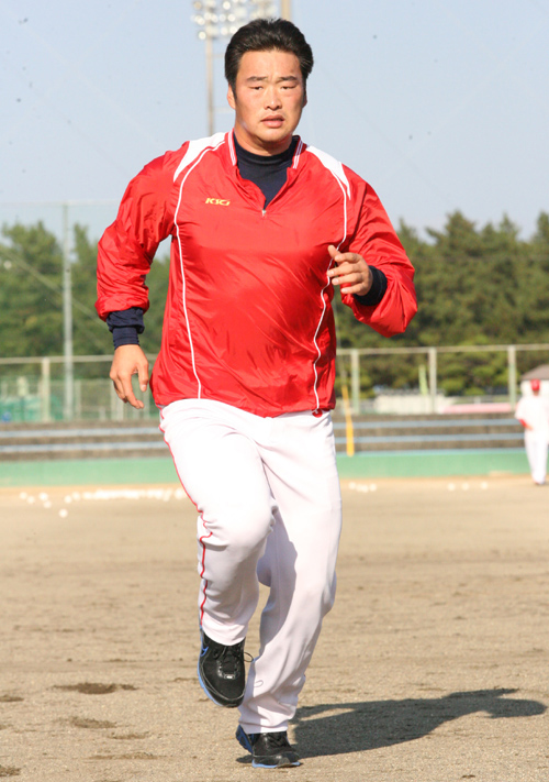 김진우는 지난 1월 괌 전지훈련에서 중도 귀국한 뒤 미야자키 휴가 캠프로 이동하지 않고 광주 재활군에 남아 훈련을 펼치고 있다. 이유는 현역 시절 수술을 받았던 오른쪽 무릎에 통증이 생겼기 때문이다.