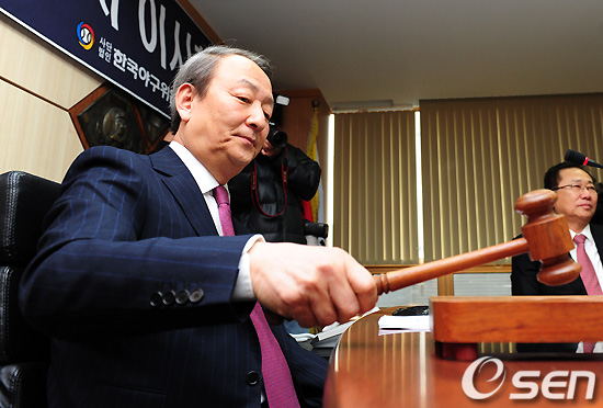 한국야구위원회(KBO) 유영구 총재가 8일 오전 9시 5분 8개구단 사장들로 구성된 이사회에서 개회를 선언했다.