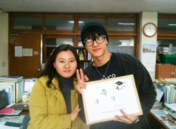 아이돌 그룹 틴탑의 리더 캡이 지난 7일 고등학교 졸업장을 받고 인증샷을 공개했다.