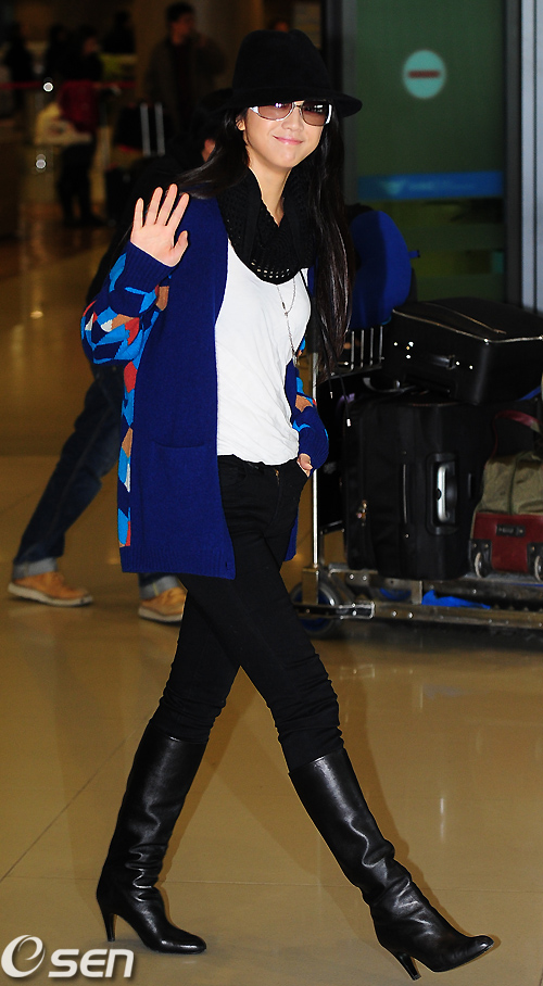 탕웨이가 입국장에서 손을 흔들고 있다./rumi@osen.co.kr