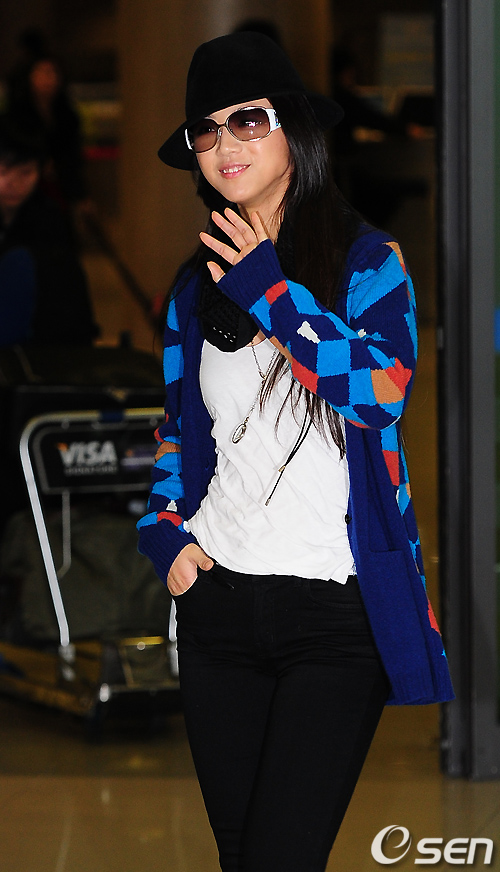 탕웨이가 입국장에서 미소지으며 인사하고 있다./rumi@osen.co.kr