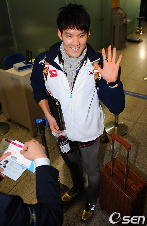 박태환이 출국장에서 환하게 미소지으며 인사하고 있다./rumi@osen.co.kr