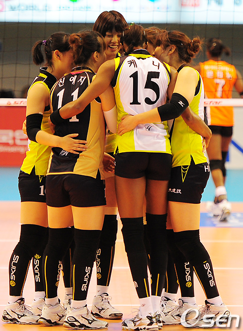 현대건설은 9일 수원 실내체육관서 열린 2010~2011 NH농협 V리그 흥국생명과 홈경기에서 세트스코어 3-1(25-19 25-21 14-25 25-23)로 승리했다.