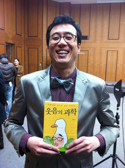 윤형빈은 10일 자정께 자신의 트위터에 "윤석형님이 책을 내셨다~~~!!!^^웃음의과학~~~이라는~~ 첫 책이시라니 좀 의외였다. 많이내셨을줄알았는데~^^"라며 책을 소개한 뒤, "다들 입을 모아 말한다~왜...냈냐고.....????^^ㅋㅋㅋ"라고 적어 웃음을 자아낸다. 또 이 글과 함께 자신의 저서를 들고 미소를 지은 이윤석의 사진을 함께 올렸다. 이 사진은 KBS 2TV '해피선데이-남자의 자격' 촬영 도중 찍은 것으로 보인다.