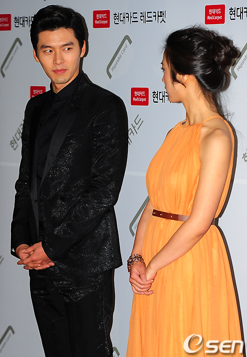 무대인사를 하러 온 현빈과 탕웨이가 서로 마주보고 있다./rumi@osen.co.kr