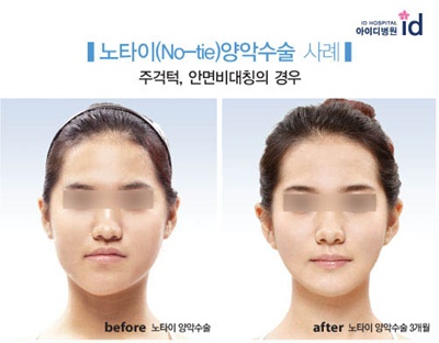 최근 환자들의 뜨거운 호응을 얻고 있는 노타이(no-tie)양악수술은 수술 직후 악간고정(위아래 치아를 2∼6주간 묶어 두는 치료 과정)을 하지 않아도 기존 양악수술과 동일한 결과를 내는 수술법으로 숨쉬기, 말하기, 먹기 등이 한결 수월해졌다는 점이 큰 특징이다.
