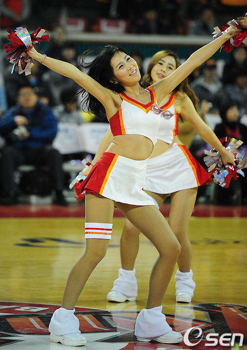 SK 치어리더들이 코트 위에서 화려한 공연을 펼치고 있다./rumi@osen.co.kr