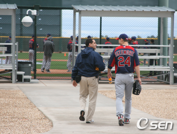 기자는 20일(현지시간) 이른 아침 야구장을 찾았다. 기자실에 짐을 풀고 곧바로 클럽하우스로 가 'CHOO'라고 써진 라커룸을 찾았지만 추신수는 없었다. 새벽 5시 30분에 와서 이미 필드에 나가 훈련하고 있었다. 지난해 4월 클리블랜드 홈구장인 프로그레시브 필드 라커룸과는 차이가 많이 있었다. 이번 캠프에는 40인 로스터에 포함된 선수과 초청 선수 등총 61명이 참가해 넓은 클럽하우스가 매우 북적거렸다.