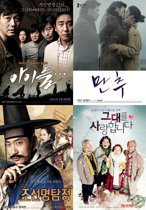 2월 넷째 주 박스오피스 순위를 영화 ‘아이들...’ ‘만추’ ‘조선명탐정’ ‘그대를 사랑합니다’ 4편이 자리하며 외화에 자리를 내어주지 않고 있는 상황이다.