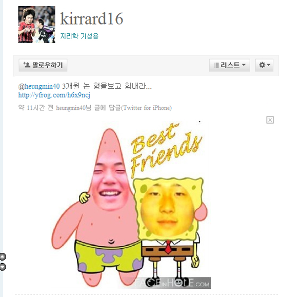 이에 손흥민은 "말이라도 감사합니다. 사진은 귀엽네요", "형때문에 웃어요^^"라며 선배이자 친한 형의 위로에 출전하지 못한 슬픔을 씻어 내렸다.
