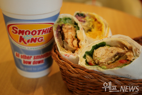 스무디킹은 샌드위치와 베이커리 메뉴를 출시해 스무디와 함께 한 끼 메뉴로 즐기도록 추천하고 있다. 닭고기에 토마토, 양상추 등을 곁들인 ‘바비큐 치킨 랩’과 채식 주의자를 위한 단 호박, 고구마, 감자 등으로 이루어진 ‘펌킨 베지테리안 랩’ 등 랩 샌드위치가 그 중 대표 메뉴. 특히 다이어트 대용식으로 스무디가 인기를 끌면서 스무디 한 잔과 이루어진 세트메뉴 판매가 늘고 있다.