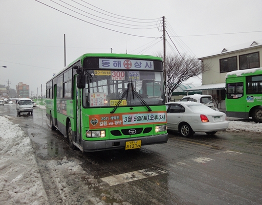 강원FC 홈경기 일정 홍보를 위해 버스 운전기사들이 팔을 걷고 나섰다.