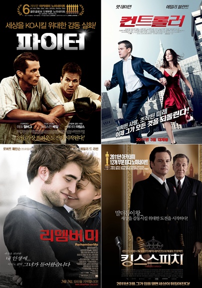 '컨트롤러'를 위시한 SF영화를 비롯, '리멤버 미'와 같은 로맨스물, 아카데미 시상식에서 작품상을 수상한 '킹스 스피치' 남녀조연상에 빛나는 '파이터' 등이다.