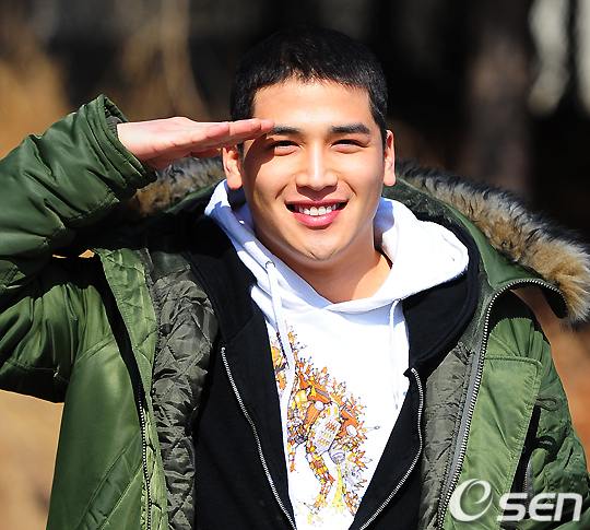유건이 취재진을 바라보며 경례를 하고 있다./rumi@osen.co.kr