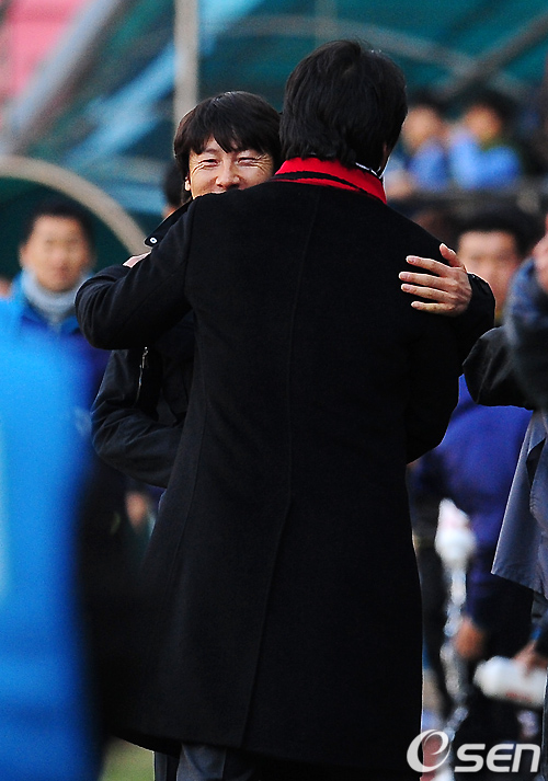 경기를 마치고 포항 황선홍 감독과 성남 신태용 감독이 포옹을 하고 있다./rumi@osen.co.kr