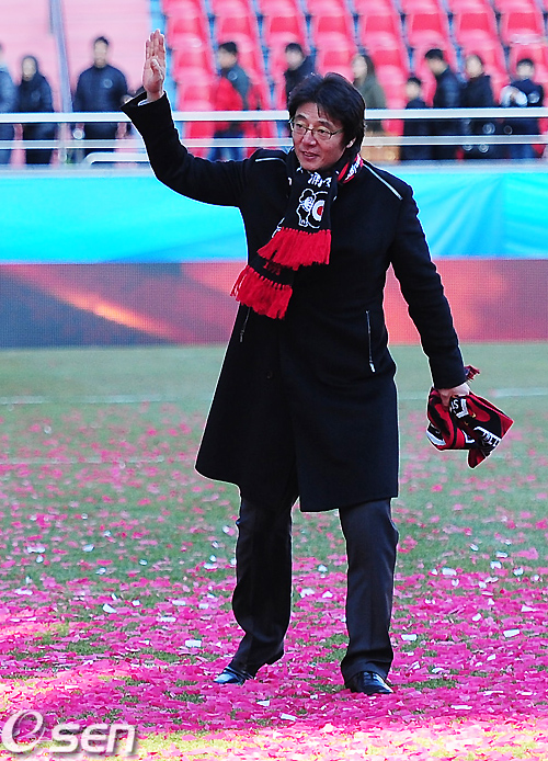 경기를 마치고 포항 황선홍 감독이 팬들에게 인사를 하고 있다./rumi@osen.co.kr