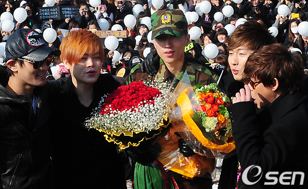 이날 H.O.T 멤버인 문희준, 토니안, 장우혁, 강타는 막내인 이재원의 전역을 축하하기 위해 부대앞으로 마중나와 우정을 과시했다.