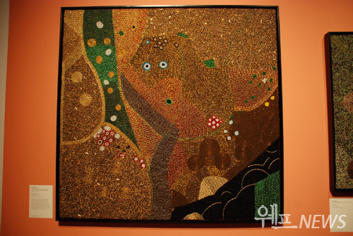 이 작품은 디자인이나 관련 교육을 전혀 받지 않은 아프리카 여성들이 비딩 작업으로 완성한 작품이다. 비즈 작업은 아주 작고 균일하지 않은 비즈 사이즈와 실제 천에 꿰맸을 때 눕는 방향 때문에 계획대로 만드는 건 불가능하다. 대략적인 느낌으로 만들어 낸 독특한 디자인이 더욱 눈길을 끈다.