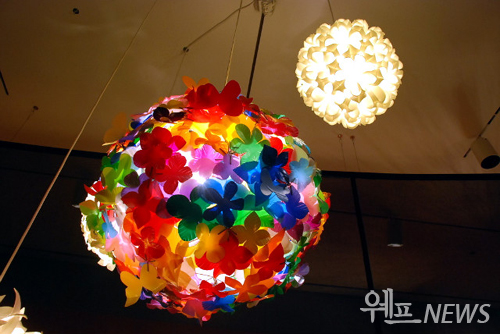 형형색색의 이 전등의 원재료는 길거리에 버려지는 기름통과 플라스틱 통이다. 비록 버려지는 물건이라도 아름다움을 재탄생시킬 수 있고, 플라스틱 기름통을 이용해 아프리카 고유의 색깔을 나타내려는 게 작가의 의도다.