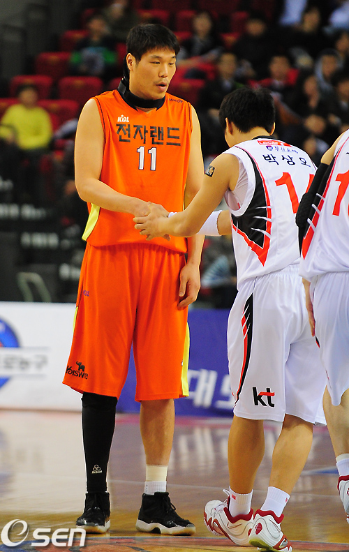 경기 전 전자랜드 서장훈과 KT 박상오가 악수를 나누고 있다./rumi@osen.co.kr